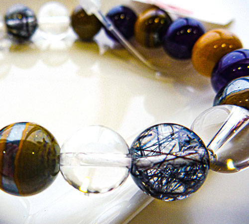 日南代が作るパワーストーンブレスレットは全て鉱物だけで一周させます。途中に人工的な金属や鉱物以外の飾り物は入れません。なぜなら、パワーストーン同士で電子を一周させて欲しいからです。途中で鉱物以外の物質が入ることで、電子の流れが止まってしまうのです。