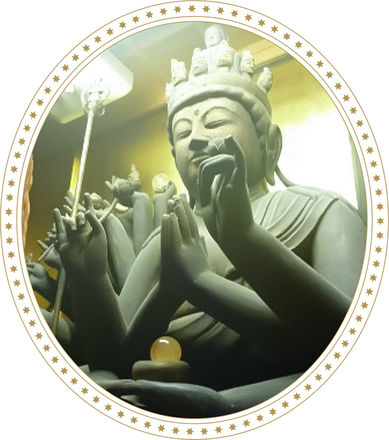 この観音さまの前で深夜から明け方の修行をさせてもらった時、千手観音の御手の上にあった器と、中にあった純金の塊ごと火山噴火のように吹っ飛ぶという奇跡体験をした。「この器に乗せるべき新しい物を持って来なさい」という尼僧からの言葉により、後に針入り水晶の丸玉をお供えした夜、普門寺の屋根に何度も何度も無数の青い閃光が落ちた。千手観音さまが水晶玉に喜んだということだった。今でも千手観音さまの膝の御手の器には、この針入り水晶玉が乗っている。以後、何度かお堂で修行をさせて頂いた。